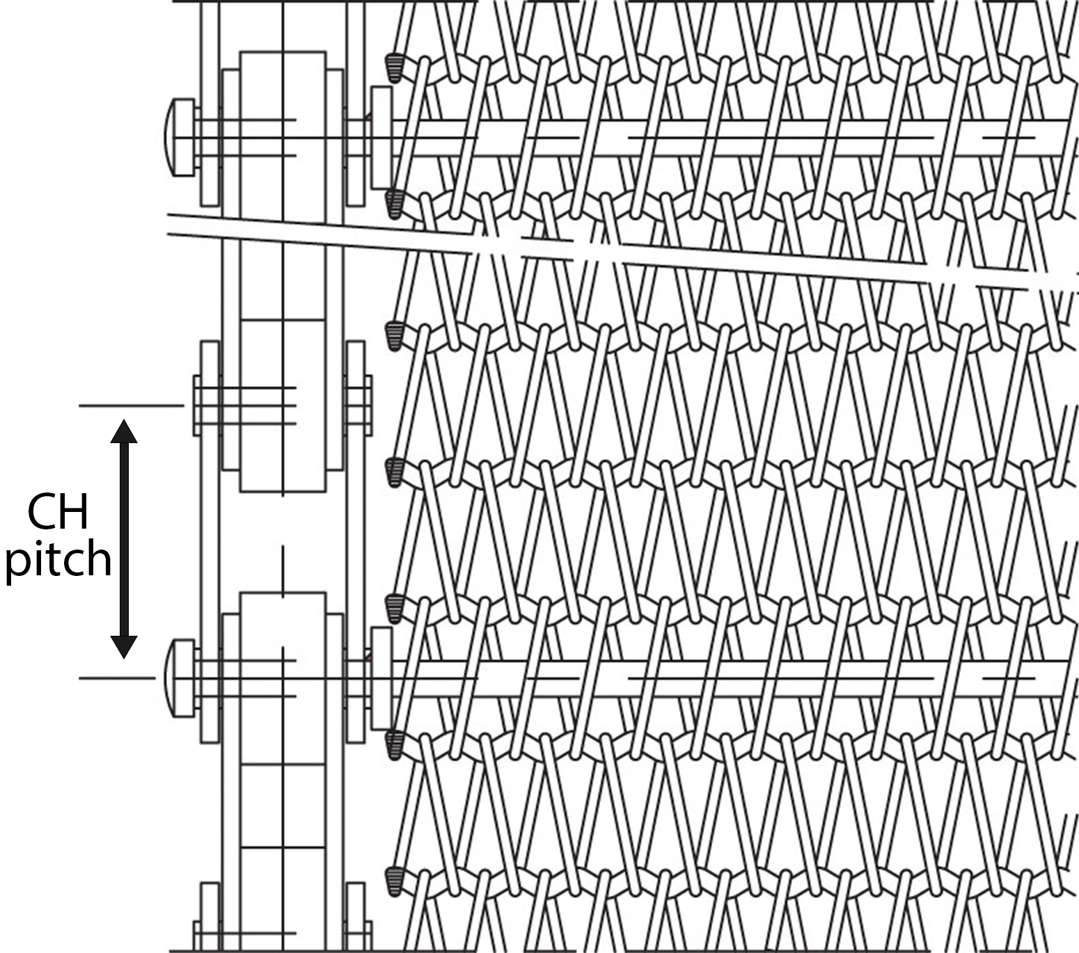 Les bandes WG peuvent être fabriquées avec des vols (Figure A) ou comme bandes de bord d'entraînement positif (figure B). Les chaînes standard sont à goupille creuse, en pas de 0,5 pouce (12,7 mm), 0,63 pouce (15,9 mm) ou 1 pouce (25,4 mm).